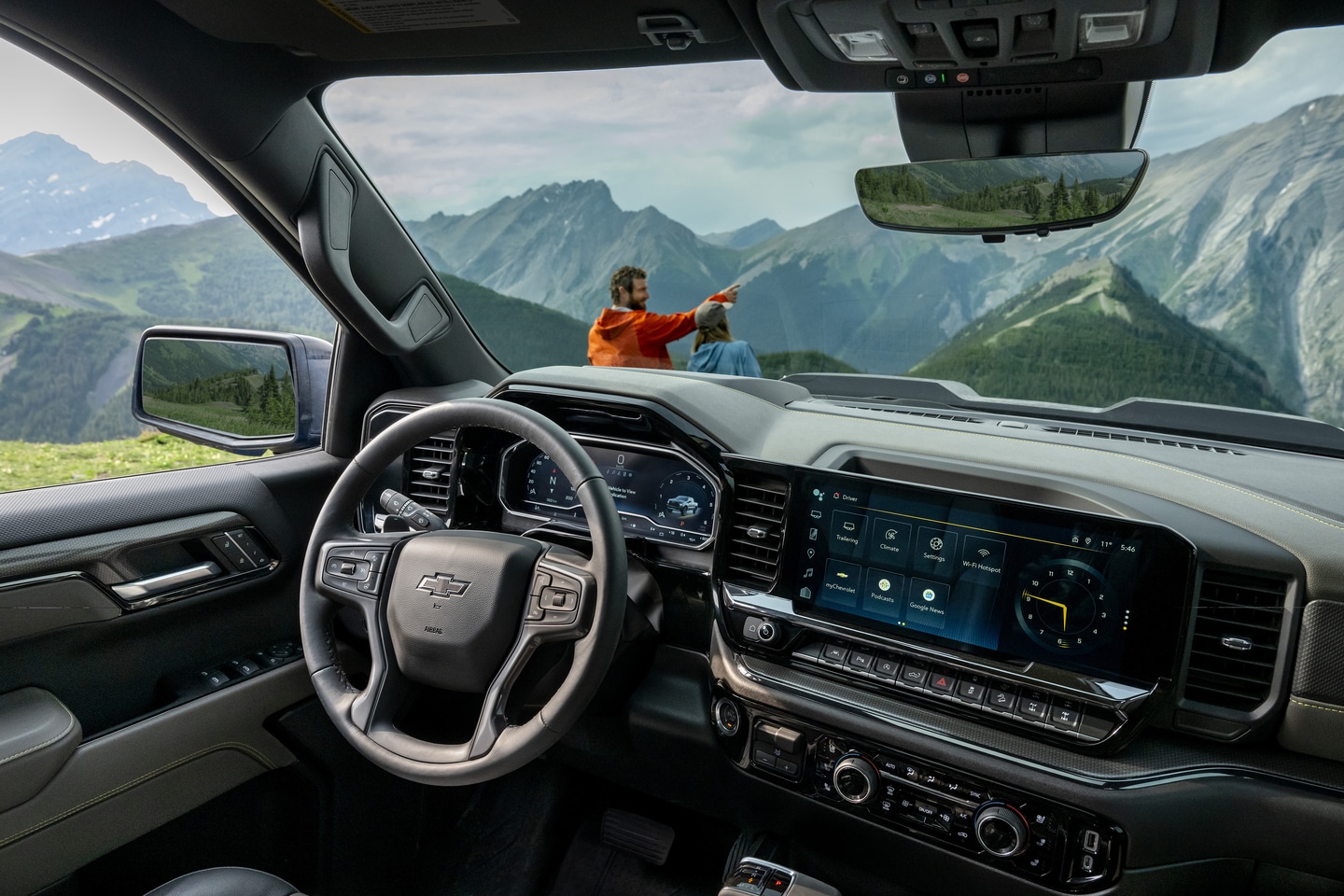 Up front, the Silverado 1500 features a modern cockpit with intuitive controls and upscale materials. The available dual-zone automatic climate control and heated/ventilated front seats keep you comfortable in any weather around Mathis. And with the spacious center console and cleverly designed storage compartments, there's a place for all your essentials.
