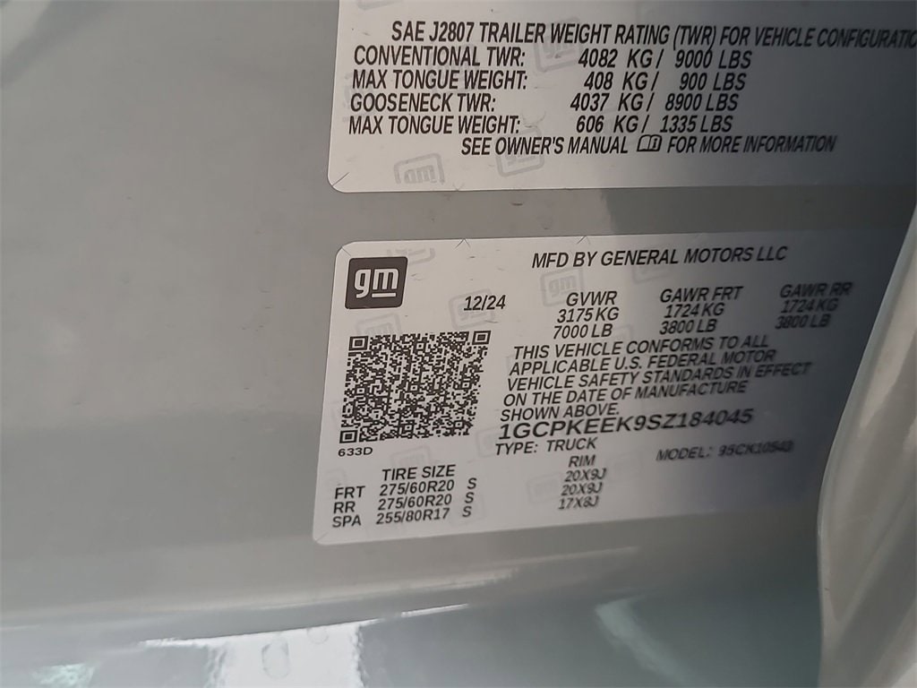 This 2025 Chevrolet Silverado 1500 RST in Slate Gray Metallic comes with the following features: 2.7L I4 Turbocharged DOHC 16V LEV3-SULEV30 310hp 8-Speed Automatic 4WD 8-Speed Automatic, 4WD, and Gideon/Very Dark Atmosphere Cloth Convenience Package (10-Way Power Driver Seat w/Lumbar, 120-Volt Bed Mounted Power Outlet, 120-Volt Interior Power Outlet, Dual Rear USB Ports (Charge Only), Dual-Zone Automatic Climate Control, Electric Rear-Window Defogger, Heated Driver & Front Outboard Passenger Seats, Heated Steering Wheel, Keyless Open & Start, LED Cargo Area Lighting, Manual Tilt/Telescoping Steering Column, Remote Vehicle Starter System, Theft Deterrent System (Unauthorized Entry), and Wrapped Steering Wheel), Dark Essentials Package (LPO) (Black Name Plates (LPO)), High Capacity Suspension Package, Preferred Equipment Group 1SP (12.3 Multicolor Reconfigurable Digital Display, 6-Speaker Audio System, All-Star Edition, Auto-Locking Rear Differential, Bluetooth® For Phone, Color-Keyed Carpeting Floor Covering, Deep-Tinted Glass, Electronic Cruise Control, EZ Lift Power Lock & Release Tailgate, Front Frame-Mounted Black Recovery Hooks, Front LED Fog Lamps, Front Rubberized Vinyl Floor Mats, HD Rear Vision Camera, Heated Power-Adjustable Outside Mirrors, High Gloss Black Mirror Caps, Inside Rear-View Mirror w/Tilt, Integrated Trailer Brake Controller, OnStar Services Capable, Power Front Windows w/Driver Express Up/Down, Power Front Windows w/Passenger Express Down, Power Rear Windows w/Express Down, Rear 60/40 Folding Bench Seat (Folds Up), Rear Rubberized-Vinyl Floor Mats, SiriusXM w/360L Trial Subscription, Standard Tailgate, Steering Wheel Audio Controls, Teen Driver, Tire Pressure Monitoring System, and Wi-Fi Hot Spot Capable), Protection Package (Chevytec Spray-On Black Bedliner and Rear Wheelhouse Liners), Standard Suspension Package, Trailering Package (Hitch Guidance), 8-Speed Automatic, 4WD, Gideon/Very Dark Atmosphere Cloth, 220 Amp Alternator, 3.42 Rear Axle Ratio, 4-Wheel Disc Brakes, 4 Black Round Assist Steps (LPO), 40/20/40 Front Split-Bench Seat, 6 Speakers, ABS brakes, Air Conditioning, All-Weather Floor Liner (LPO), Alloy wheels, AM/FM radio: SiriusXM with 360L, Apple CarPlay/Android Auto, Auto High-beam Headlights, Automatic Emergency Braking, Automatic temperature control, Black Tailgate CHEVROLET Lettering (LPO), Brake assist, Bumpers: body-color, Cloth Seat Trim, Compass, Delay-off headlights, Driver door bin, Driver vanity mirror, Dual front impact airbags, Dual front side impact airbags, Electronic Stability Control, Emergency communication system: OnStar, Following Distance Indicator, Forward Collision Alert, Front anti-roll bar, Front Center Armrest w/Storage, Front dual zone A/C, Front fog lights, Front License Plate Kit, Front Pedestrian Braking, Front reading lights, Front wheel independent suspension, Fully automatic headlights, Heated door mirrors, Heated front seats, Heated steering wheel, Illuminated entry, IntelliBeam Automatic High Beam On/Off, Lane Keep Assist w/Lane Departure Warning, Low tire pressure warning, Occupant sensing airbag, Outside temperature display, Overhead airbag, Overhead console, Panic alarm, Passenger door bin, Passenger vanity mirror, Power door mirrors, Power driver seat, Power steering, Power windows, Premium audio system: Chevrolet Infotainment 3 Premium, Radio data system, Radio: Chevrolet Infotainment 3 Premium System, Rear reading lights, Rear step bumper, Rear window defroster, Remote keyless entry, Security system, Single Outlet Exhaust, Speed control, Speed-sensing steering, Split folding rear seat, Steering wheel mounted audio controls, Tachometer, Telescoping steering wheel, Tilt steering wheel, Traction control, Trip computer, Variably intermittent wipers, Voltmeter, Wheels: 18 x 8.5 Bright Silver Painted Aluminum, and Wheels: 2 Price includes: $1000 - Bonus Cash. Exp. 01/02/2026 $1000 - Bonus Cash. Exp. 01/02/2