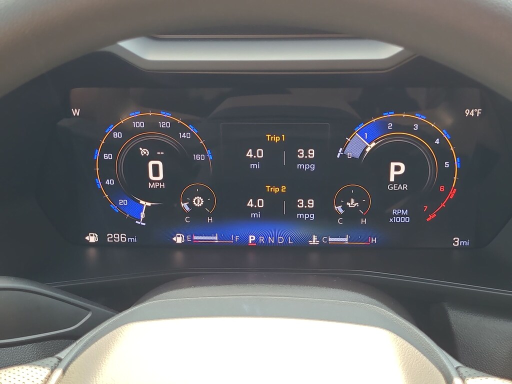 - Speedometer, tachometer, engine temperature, fuel level, mileage and trip displays