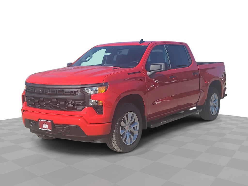 This 2026 Chevrolet Silverado 1500 Custom in Red comes with the following features: 2.7L I4 Turbocharged DOHC 16V LEV3-SULEV30 310hp 8-Speed Automatic RWD 8-Speed Automatic and Jet Black Cloth Custom Convenience Package (Electric Rear-Window Defogger, EZ Lift Power Lock and Release Tailgate, LED Cargo Area Lighting, Remote Vehicle Starter System, and Theft Deterrent System (unauthorized Entry)), Custom Value Package, High Capacity Suspension Package, Trailering Package (Hitch Guidance), 8-Speed Automatic, Jet Black Cloth, 10-Way Power Driver Seat with Lumbar, 120-Volt Bed Mounted Power Outlet, 120-Volt Interior Power Outlet, 3.42 Rear Axle Ratio, 3.5 Monochromatic Display Driver Info Center, 4-Wheel Disc Brakes, 40/20/40 Front Split-Bench Seat, 6 Speakers, 6-Speaker Audio System, ABS brakes, Air Conditioning, Alloy wheels, AM/FM radio: SiriusXM, Apple CarPlay/Android Auto, Auto High-beam Headlights, Automatic Emergency Braking, Bluetooth® For Phone, Brake assist, Bumpers: body-color, Cloth Seat Trim, Color-Keyed Carpeting Floor Covering, Compass, Deep-Tinted Glass, Delay-off headlights, Driver door bin, Driver vanity mirror, Dual front impact airbags, Dual front side impact airbags, Dual Rear USB Ports (charge Only), Electronic Cruise Control, Electronic Stability Control, Emergency communication system: OnStar, Following Distance Indicator, Forward Collision Alert, Front anti-roll bar, Front Center Armrest w/Storage, Front Frame-Mounted Black Recovery Hooks, Front Pedestrian Braking, Front reading lights, Front Rubberized Vinyl Floor Mats, Front wheel independent suspension, Fully automatic headlights, HD Rear Vision Camera, Heated door mirrors, Illuminated entry, IntelliBeam Automatic High Beam on/Off, Lane Keep Assist with Lane Departure Warning, Low tire pressure warning, Manual Tilt Wheel Steering Column, Occupant sensing airbag, OnStar Services Capable, Outside temperature display, Overhead airbag, Overhead console, Panic alarm, Passenger door bin, Passenger vanity mirror, Power door mirrors, Power driver seat, Power Front Windows with Driver Express Up/Down, Power Front Windows with Passenger Express Down, Power Rear Windows with Express Down, Power steering, Power windows, Premium audio system: Chevrolet Infotainment 3, Radio data system, Radio: Chevrolet Infotainment 3 System, Rear 60/40 Folding Bench Seat (folds Up), Rear reading lights, Rear Rubberized-Vinyl Floor Mats, Rear step bumper, Rear window defroster, Remote Keyless Entry, Remote keyless entry, Security system, SiriusXM Trial Subscription, Speed control, Speed-sensing steering, Split folding rear seat, Standard Tailgate, Tachometer, Teen Driver, Tilt steering wheel, Tire Pressure Monitoring System, Traction control, Trip computer, Variably intermittent wipers, Voltmeter, Wheels: 20 x 9 Bright Silver Painted Aluminum, and Wi-Fi Hot Spot Capable. Price includes: $1000 - Bonus Cash. Exp. 01/02/2026 $3000 - Customer Cash. Exp. 01/02/2026