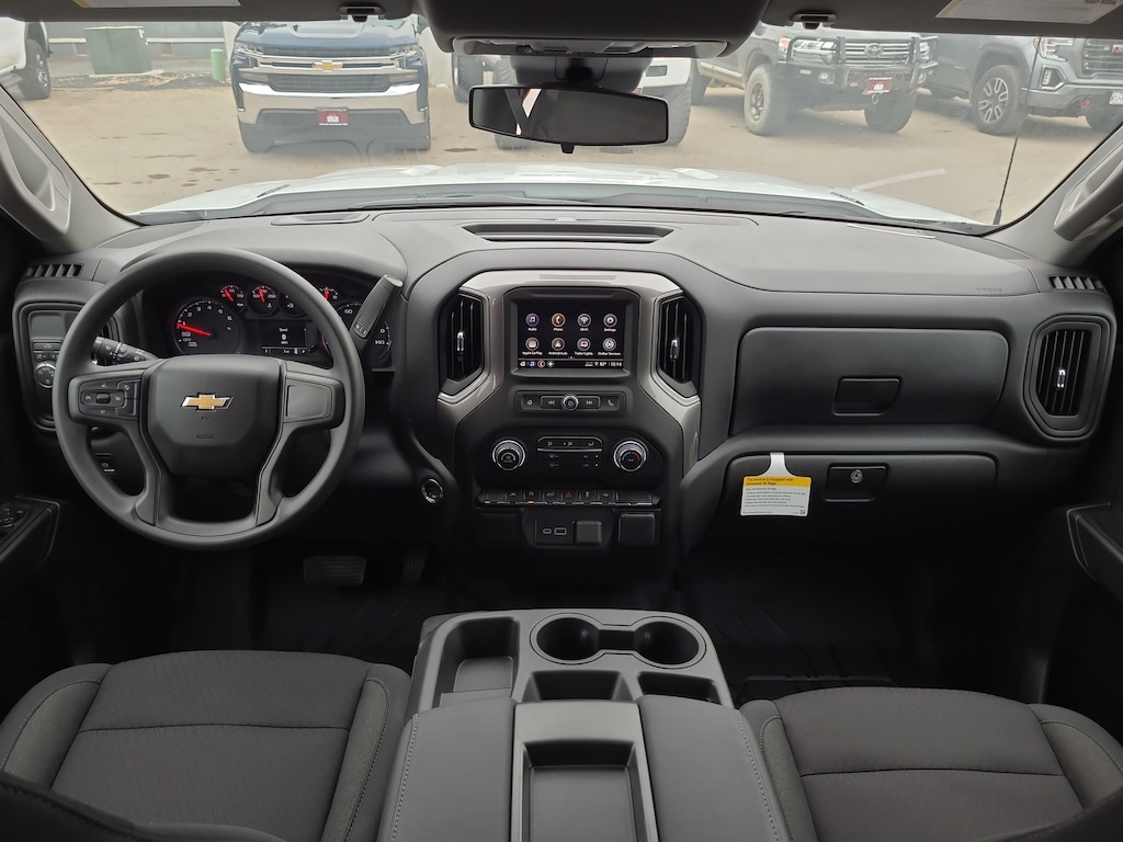 This 2026 Chevrolet Silverado 1500 Custom in Summit White comes with the following features: 2.7L I4 Turbocharged DOHC 16V LEV3-SULEV30 310hp 8-Speed Automatic RWD 8-Speed Automatic and Black Cloth Custom Convenience Package (Electric Rear-Window Defogger, EZ Lift Power Lock and Release Tailgate, LED Cargo Area Lighting, Remote Vehicle Starter System, and Theft Deterrent System (unauthorized Entry)), Custom Value Package, High Capacity Suspension Package, Trailering Package (Hitch Guidance), 8-Speed Automatic, Black Cloth, 10-Way Power Driver Seat with Lumbar, 120-Volt Bed Mounted Power Outlet, 120-Volt Interior Power Outlet, 3.42 Rear Axle Ratio, 3.5 Monochromatic Display Driver Info Center, 4-Wheel Disc Brakes, 40/20/40 Front Split-Bench Seat, 6 Speakers, 6-Speaker Audio System, ABS brakes, Air Conditioning, Alloy wheels, AM/FM radio: SiriusXM, Apple CarPlay/Android Auto, Auto High-beam Headlights, Automatic Emergency Braking, Bluetooth® For Phone, Brake assist, Bumpers: body-color, Cloth Seat Trim, Color-Keyed Carpeting Floor Covering, Compass, Deep-Tinted Glass, Delay-off headlights, Driver door bin, Driver vanity mirror, Dual front impact airbags, Dual front side impact airbags, Dual Rear USB Ports (charge Only), Electronic Cruise Control, Electronic Stability Control, Emergency communication system: OnStar, Following Distance Indicator, Forward Collision Alert, Front anti-roll bar, Front Center Armrest w/Storage, Front Frame-Mounted Black Recovery Hooks, Front Pedestrian Braking, Front reading lights, Front Rubberized Vinyl Floor Mats, Front wheel independent suspension, Fully automatic headlights, HD Rear Vision Camera, Heated door mirrors, Illuminated entry, IntelliBeam Automatic High Beam on/Off, Lane Keep Assist with Lane Departure Warning, Low tire pressure warning, Manual Tilt Wheel Steering Column, Occupant sensing airbag, OnStar Services Capable, Outside temperature display, Overhead airbag, Overhead console, Panic alarm, Passenger door bin, Passenger vanity mirror, Power door mirrors, Power driver seat, Power Front Windows with Driver Express Up/Down, Power Front Windows with Passenger Express Down, Power Rear Windows with Express Down, Power steering, Power windows, Premium audio system: Chevrolet Infotainment 3, Radio data system, Radio: Chevrolet Infotainment 3 System, Rear 60/40 Folding Bench Seat (folds Up), Rear reading lights, Rear Rubberized-Vinyl Floor Mats, Rear step bumper, Rear window defroster, Remote Keyless Entry, Remote keyless entry, Security system, SiriusXM Trial Subscription, Speed control, Speed-sensing steering, Split folding rear seat, Standard Tailgate, Tachometer, Teen Driver, Tilt steering wheel, Tire Pressure Monitoring System, Traction control, Trip computer, Variably intermittent wipers, Voltmeter, Wheels: 20 x 9 Bright Silver Painted Aluminum, and Wi-Fi Hot Spot Capable. Price includes: $1000 - Bonus Cash. Exp. 01/02/2026 $3000 - Customer Cash. Exp. 01/02/2026