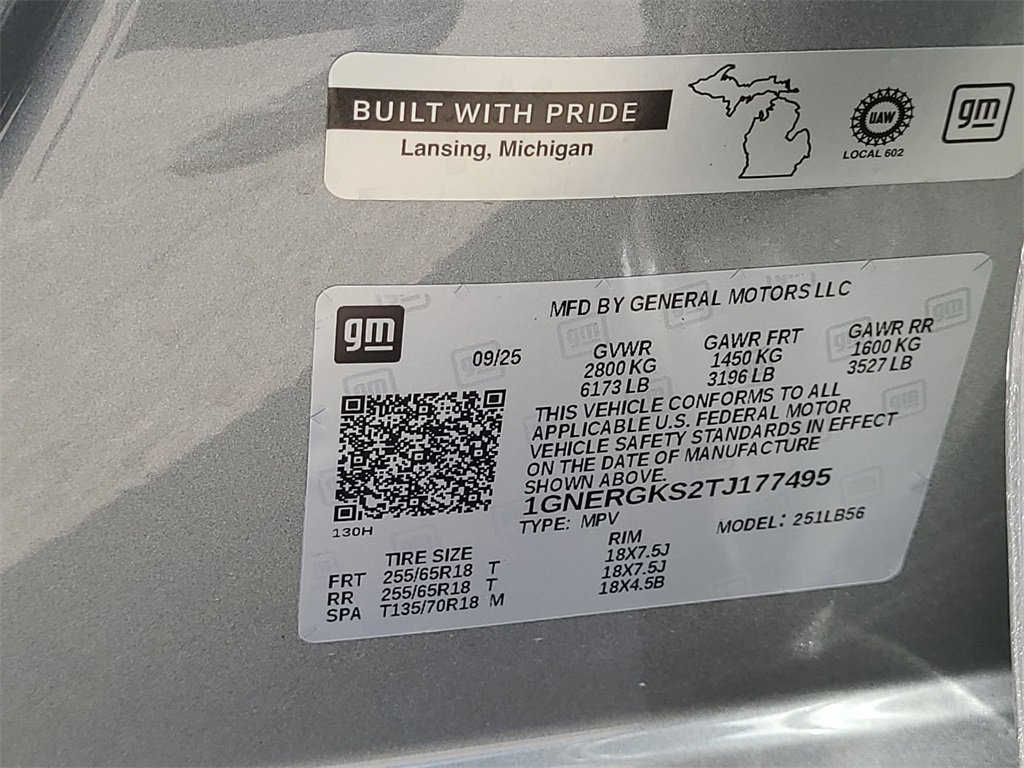 This 2026 Chevrolet Traverse LT 1LT in Sterling Gray Metallic comes with the following features: 2.5L DOHC 8-Speed Automatic FWD Driver Confidence Package (HD Surround Vision, Key Card, Power Outlet, Rear Camera Mirror, Rear Pedestrian Alert, and Traffic Sign Recognition), Enhanced Driving Package (Active Noise Cancellation, Bose Premium 12-Speaker Audio System Feature, Driver Attention Assist, Enhanced Automatic Parking Assist, and Super Cruise), Floor Liner Package (1st and 2nd Row All-Weather Floor Liners, 3rd Row All-Weather Floor Liner, and Integrated Cargo Liner), Preferred Equipment Group 1LT, 3rd row seats: split-bench, 4-Way Manual Front Passenger Seat Adjuster, 4-Wheel Disc Brakes, 6 Speakers, 6-Speaker Audio System Feature, 8-Way Power Driver Seat Adjuster, ABS brakes, Air Conditioning, Alloy wheels, AM/FM radio: SiriusXM with 360L, Apple CarPlay/Android Auto, Auto High-beam Headlights, Automatic temperature control, Brake assist, Bumpers: body-color, Child-Seat-Sensing Airbag, Compass, Delay-off headlights, Driver door bin, Driver vanity mirror, Dual front impact airbags, Dual front side impact airbags, Electronic Stability Control, Emergency communication system: OnStar, Four wheel independent suspension, Front anti-roll bar, Front Bucket Seats, Front Center Armrest, Front dual zone A/C, Front reading lights, Fully automatic headlights, Heated door mirrors, Heated Driver and Front Passenger Seats, Heated front seats, Heated steering wheel, Illuminated entry, Low tire pressure warning, Navigation System, Occupant sensing airbag, Outside temperature display, Overhead airbag, Overhead console, Panic alarm, Passenger door bin, Passenger vanity mirror, Power door mirrors, Power driver seat, Power Liftgate, Power steering, Power windows, Premium Cloth Seat Trim, Radio data system, Radio: : Audio System w/17.7 Diagonal Display, Rear air conditioning, Rear anti-roll bar, Rear reading lights, Rear window defroster, Rear window wiper, Remote keyless entry, Security system, SiriusXM with 360L Trial Subscription, Speed control, Speed-sensing steering, Spoiler, Steering wheel mounted audio controls, Tachometer, Telescoping steering wheel, Tilt steering wheel, Traction control, Trip computer, Turn signal indicator mirrors, Variably intermittent wipers, Voltmeter, and Wheels: 18 Grazen Metallic Machined-Face Aluminum.