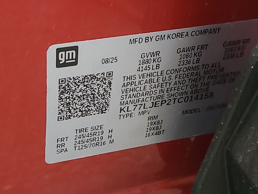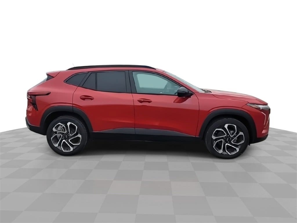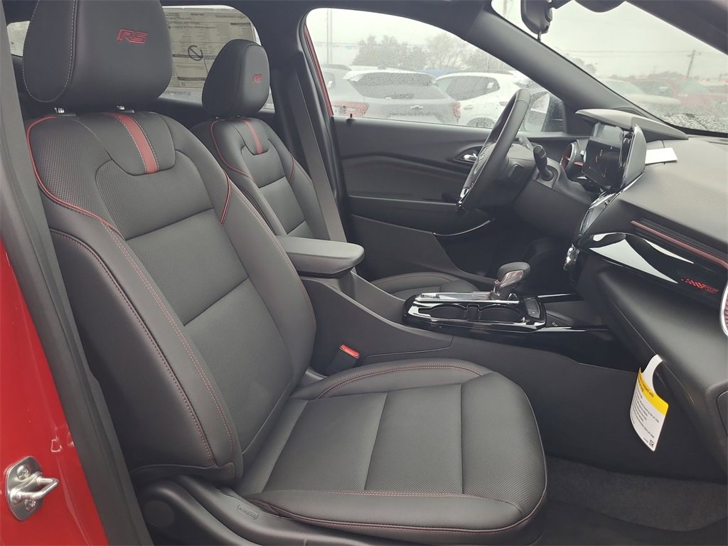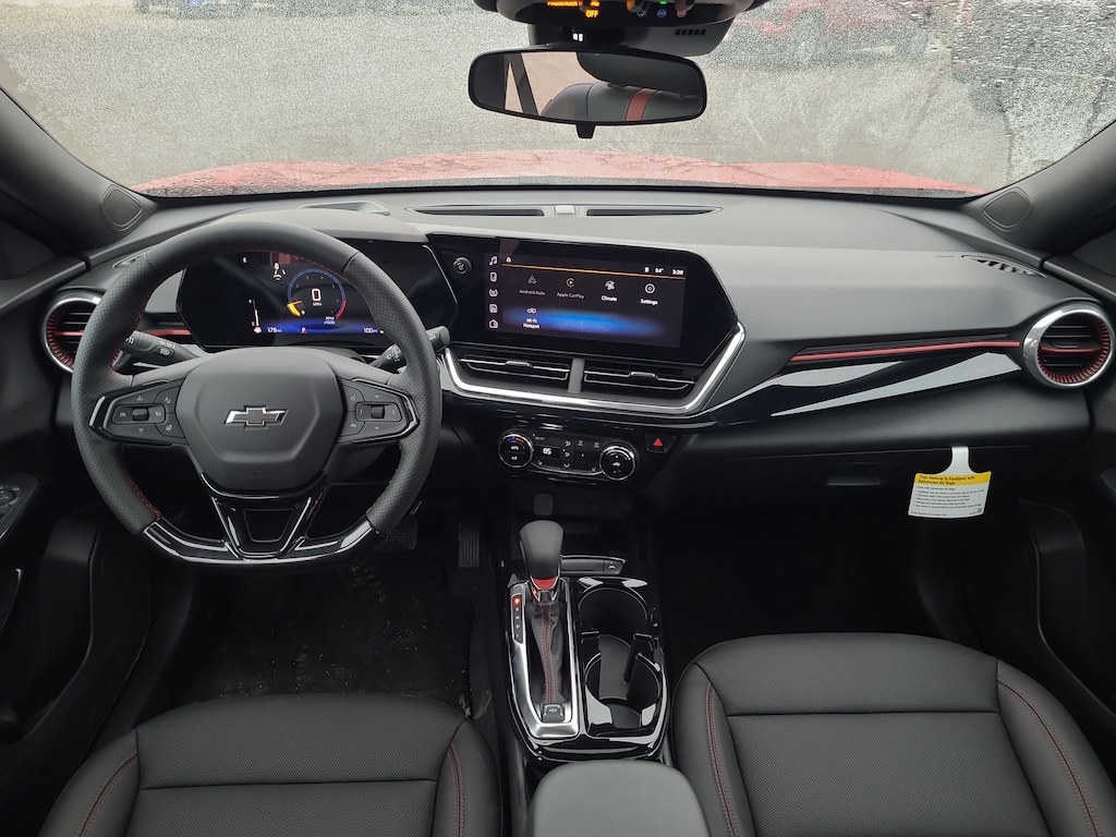 This 2026 Chevrolet Trax 2RS in Apex Red comes with the following features: ECOTEC 1.2L Turbo 6-Speed Automatic FWD Driver Confidence Package (Adaptive Cruise Control, Lane Change Alert with Side Blind Zone Alert, Rear Cross Traffic Alert, and Rear Park Assist), License Plate Front Mounting Package, Preferred Equipment Group 2RS, Sunroof Package (Power Sliding Glass Sunroof with Manual Shade and Wireless Charging), 2-Way Adjustable Front Head Restraints, 2-Way Power Driver Lumbar Seat Adjuster, 3.50 Final Drive Axle Ratio, 4-Way Manual Front Passenger Seat Adjuster, 4-Wheel Disc Brakes, 6 Speakers, 6-Speaker Audio System Feature, 8-Way Power Driver Seat Adjuster, ABS brakes, Air Conditioning, Alloy wheels, AM/FM radio: SiriusXM, Auto High-beam Headlights, Automatic temperature control, Brake assist, Bumpers: body-color, Compass, Delay-off headlights, Driver door bin, Driver vanity mirror, Dual front impact airbags, Dual front side impact airbags, Electronic Stability Control, Emergency communication system: OnStar One Essentials, Evotex Seat Trim, Exterior Parking Camera Rear, Front anti-roll bar, Front Bucket Seats, Front Center Armrest, Front reading lights, Front wheel independent suspension, Fully automatic headlights, Heated door mirrors, Heated Driver and Front Passenger Seats, Heated front seats, Heated steering wheel, Illuminated entry, Leather steering wheel, Low tire pressure warning, Occupant sensing airbag, Outside temperature display, Overhead airbag, Overhead console, Panic alarm, Passenger door bin, Passenger vanity mirror, Power door mirrors, Power driver seat, Power steering, Power windows, Premium audio system: Chevrolet Infotainment 3, Radio data system, Radio: AM/FM Stereo Audio System, Rear window defroster, Rear window wiper, Remote keyless entry, Security system, SiriusXM Trial Subscription, Speed control, Split folding rear seat, Spoiler, Sport steering wheel, Steering wheel mounted audio controls, Tachometer, Telescoping steering wheel, Tilt steering wheel, Traction control, Trip computer, Variably intermittent wipers, Wheels: 19 Black-Painted Machined Aluminum, and Wireless Apple CarPlay/Wireless Android Auto.