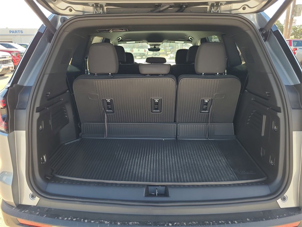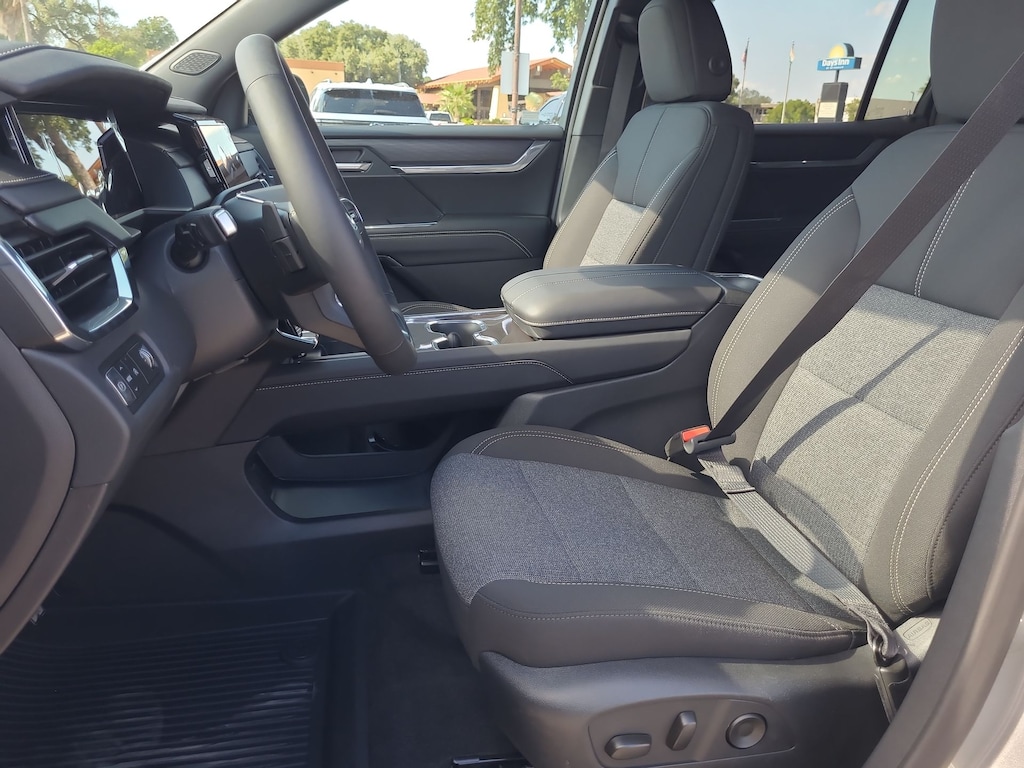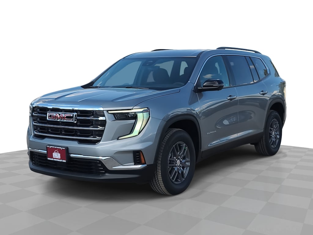 This 2026 GMC Acadia Elevation in Sterling Metallic comes with the following features: 2.5L DOHC 8-Speed Automatic FWD FWD and After Dark Cloth Floor Liner Package (1st and 2nd Row All-Weather Floor Liner, 3rd Row All-Weather Floor Liner, and Integrated Cargo Liner), Preferred Equipment Group 4SC, FWD, After Dark Cloth, 12 Speakers, 18 x 7.5 Aluminum Wheels, 3.49 Final Drive Axle Ratio, 3rd row seats: split-bench, 4-Way Manual Front Passenger Seat Adjuster, 4-Wheel Disc Brakes, 8-Passenger Seating (2-3-3 Seating Configuration), 8-Way Power Driver Seat Adjuster, ABS brakes, Air Conditioning, Alloy wheels, AM/FM radio: SiriusXM with 360L, Apple CarPlay/Android Auto, Auto High-beam Headlights, Automatic temperature control, Bodyside moldings, Bose Premium 12-Speaker System with Sub-Woofer, Brake assist, Bumpers: body-color, Cloth Seat Trim, Compass, Delay-off headlights, Driver 2-Way Power Lumbar Seat Adjuster, Driver door bin, Driver vanity mirror, Dual front impact airbags, Dual front side impact airbags, Electronic Stability Control, Emergency communication system: OnStar Services capable, Exterior Parking Camera Rear, Four wheel independent suspension, Front anti-roll bar, Front Bucket Seats, Front Center Armrest, Front dual zone A/C, Front fog lights, Front License Plate Bracket, Front reading lights, Fully automatic headlights, Heated door mirrors, Heated Driver and Front Passenger Seats, Heated front seats, Heated steering wheel, Illuminated entry, Leather steering wheel, Low tire pressure warning, Navigation System, Occupant sensing airbag, Outside temperature display, Overhead airbag, Overhead console, Panic alarm, Passenger door bin, Passenger vanity mirror, Power door mirrors, Power driver seat, Power Liftgate, Power steering, Power windows, Radio data system, Radio: 15 Diagonal Premium GMC Infotainment System, Rear air conditioning, Rear anti-roll bar, Rear reading lights, Rear seat center armrest, Rear side impact airbag, Rear window defroster, Rear window wiper, Remote keyless entry, Security system, SiriusXM with 360L, Speed control, Speed-sensing steering, Split folding rear seat, Spoiler, Sport steering wheel, Steering wheel mounted audio controls, Tachometer, Telescoping steering wheel, Tilt steering wheel, Traction control, Trip computer, Turn signal indicator mirrors, Variably intermittent wipers, and Voltmeter.