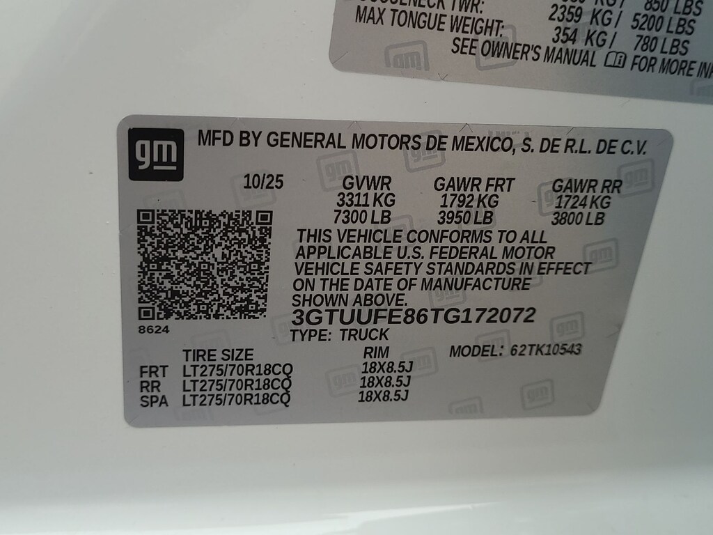This 2026 GMC Sierra 1500 AT4X in Summit White comes with the following features: 3.0L I6 10-Speed Automatic 4WD 10-Speed Automatic, 4WD, and Obsidian Rush Leather Trailering Package (Hitch Guidance), 10-Speed Automatic, 4WD, Obsidian Rush Leather, 12 Speakers, 120-Volt Bed Mounted Power Outlet, 120-Volt Interior Power Outlet, 16-Way Power Driver Seat Adjuster w/Lumbar, 16-Way Power Passenger Seat Adjuster w/Lumbar, 2 Charge/Data USB Ports Inside Center Console, 2 Type-C Charge-Only Rear USB Ports, 2 USB Ports, 220 Amp Alternator, 3.23 Rear Axle Ratio, 4-Wheel Disc Brakes, ABS brakes, Air Conditioning, Alloy wheels, AM/FM radio: SiriusXM with 360L, Apple CarPlay/Android Auto, Auto High-beam Headlights, Auto-dimming door mirrors, Auto-dimming Rear-View mirror, Automatic Emergency Braking, Automatic temperature control, Bed View Camera, Block heater, Bose Premium Series w/12-Speaker System, Brake assist, Buckle to Drive, Color-Keyed Carpeting Floor Covering, Compass, Deep-Tinted Glass, Delay-off headlights, Driver door bin, Driver Memory, Driver vanity mirror, Driver-Selectable Full-Locking Front Differential, Driver-Selectable Full-Locking Rear Differential, Dual front impact airbags, Dual front side impact airbags, Electric Rear-Window Defogger, Electronic Stability Control, Emergency communication system: OnStar, Floor-Mounted Center Console, Following Distance Indicator, Forward Collision Alert, Front anti-roll bar, Front Bucket Seats, Front Center Armrest, Front dual zone A/C, Front fog lights, Front Pedestrian Braking, Front Prem Floor Liners w/Removable Carpet Insert, Front Rain-Sensing Wipers, Front reading lights, Front wheel independent suspension, Full Grain Leather Seat Trim, Fully automatic headlights, Garage door transmitter, Genuine wood dashboard insert, Genuine wood door panel insert, Gloss Black Header w/Drk Nickel Grille Insert Bars, HD Surround Vision, Heads-Up Display, Heated 2nd Row Outboard Seats, Heated door mirrors, Heated Driver & Front Outboard Passenger Seating, Heated front seats, Heated rear seats, Heated steering wheel, Heavy-Duty Air Filter, Hill Descent Control, Hitch View, Illuminated entry, In-Vehicle Trailering System App, Integrated Trailer Brake Controller, IntelliBeam Automatic High Beam On/Off, Keyless Open & Start, Lane Keep Assist w/Lane Departure Warning, Leather steering wheel, LED Cargo Area Lighting, Low tire pressure warning, Memory seat, Multicolor 15 Diagonal Head-Up Display, MultiPro Tailgate Audio System by Kicker (LPO), Navigation System, Occupant sensing airbag, Off-Road Suspension, OnStar Services Capable, Outside temperature display, Overhead airbag, Overhead console, Panic alarm, Passenger door bin, Passenger vanity mirror, Perimeter Lighting, Power Door Locks, Power door mirrors, Power driver seat, Power Front Passenger Windows w/Express Up/Down, Power Front Windows w/Driver Express Up/Down, Power moonroof, Power passenger seat, Power Rake & Telescoping Steering Column, Power Rear Windows w/Express Down, Power Sliding Rear Window w/Rear Defogger, Power steering, Power Sunroof, Power windows, Push Button Start, Radio data system, Radio: Premium GMC Infotainment Audio System, Rain sensing wipers, Rear Cross Traffic Braking, Rear Pedestrian Detection, Rear Prem Floor Liners w/Removable Carpet Insert, Rear reading lights, Rear seat center armrest, Rear step bumper, Rear Wheelhouse Liners, Rear window defroster, Remote keyless entry, Remote Vehicle Starter System, Safety Alert Seat, Security system, SiriusXM w/360L Trial Subscription, Speed control, Speed-sensing steering, Split folding rear seat, Spray-On Pickup Bedliner w/GMC Logo, Steering Wheel Audio Controls, Steering wheel mounted audio controls, Tachometer, Telescoping steering wheel, Theft Deterrent System (Unauthorized Entry), Tilt steering wheel, Traction control, Trailer Camera Provisi Price includes: $1500 - Purchase Allowance. Exp. 01/02/2026 $250 - Bonus Cash. Exp.