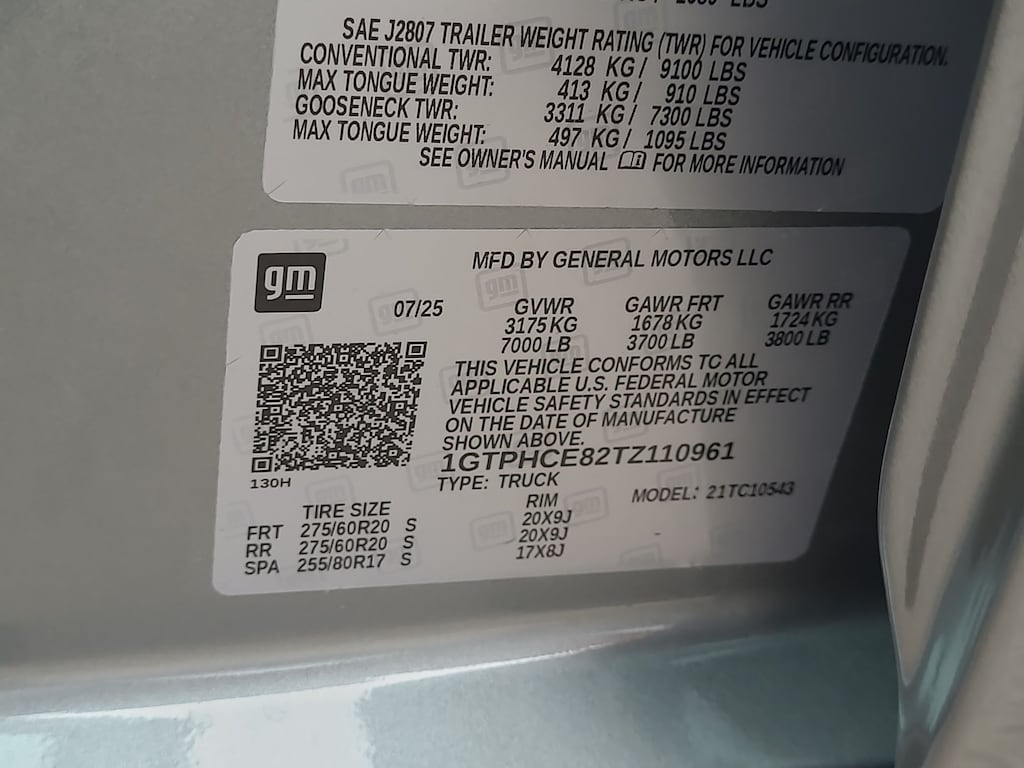 This 2026 GMC Sierra 1500 Elevation in Sterling Metallic comes with the following features: 3.0L I6 10-Speed Automatic RWD 10-Speed Automatic and Black Cloth Cloth Rear Seat with Storage Package, High Capacity Suspension Package, Preferred Equipment Group 3SB (10-Way Power Driver Seat Adjuster with Lumbar, 120-Volt Bed Mounted Power Outlet, 120-Volt Interior Power Outlet, 2 Charge/Data USB Ports, 2 Type-C Charge-Only Rear USB Ports, 4-Way Manual Passenger Seat Adjuster, 6-Speaker Audio System Feature, Auto-Locking Rear Differential, Body Color Header with Gloss Black Mesh Grille Bars, Color-Keyed Carpeting Floor Covering, Deep-Tinted Glass, Electric Rear-Window Defogger, Front 40/20/40 Split-Bench Seat, Front Frame-Mounted Black Recovery Hooks, Front Rubberized-Vinyl Floor Mats, HD Rear Vision Camera, Heated Driver and Front Outboard Passenger Seating, Integrated Trailer Brake Controller, Keyless Open and Start, LED Cargo Area Lighting, Manual Tilt-Wheel and Telescoping Steering Column, OnStar Services Capable, Power Door Locks, Power Front Windows with Driver Express Up/Down, Power Front Windows with Passenger Express Down, Power Rear Windows with Express Down, Push Button Start, Rear Rubberized-Vinyl Floor Mats, Remote Vehicle Starter System, SiriusXM with 360L Trial Subscription, Steering Wheel Audio Controls, Theft Deterrent System (unauthorized Entry), and Wi-Fi Hotspot Capable), Preferred Package (Adaptive Cruise Control, Hitch View, in-Vehicle Trailering System App, Power Sliding Rear Window with Rear Defogger, Premium Bose 7-Speaker Sound System, Rear Wheelhouse Liners, and Universal Home Remote), Trailering Package (Hitch Guidance), 10-Speed Automatic, Black Cloth, 2 Charge/Data USB Ports Inside Center Console, 220 Amp Alternator, 3.23 Rear Axle Ratio, 4-Wheel Disc Brakes, 6 Speakers, ABS brakes, Air Conditioning, Alloy wheels, AM/FM radio: SiriusXM with 360L, Apple CarPlay/Android Auto, Auto High-beam Headlights, Automatic Emergency Braking, Automatic temperature control, Brake assist, Buckle to Drive, Bumpers: body-color, Cloth Seat Trim, Compass, Delay-off headlights, Driver door bin, Driver vanity mirror, Dual front impact airbags, Dual front side impact airbags, Electronic Precision Shift, Electronic Stability Control, Emergency communication system: OnStar, Engine Block Heater, Floor-Mounted Center Console, Following Distance Indicator, Forward Collision Alert, Front anti-roll bar, Front Bucket Seats, Front Center Armrest w/Storage, Front dual zone A/C, Front fog lights, Front License Plate Kit, Front Pedestrian Braking, Front reading lights, Front wheel independent suspension, Fully automatic headlights, Genuine wood dashboard insert, GMC MultiPro Tailgate, Heated door mirrors, Heated front seats, Heated steering wheel, Illuminated entry, IntelliBeam Automatic High Beam on/Off, Lane Keep Assist with Lane Departure Warning, Low tire pressure warning, Navigation System, Occupant sensing airbag, Outside temperature display, Overhead airbag, Overhead console, Panic alarm, Passenger door bin, Passenger vanity mirror, Power door mirrors, Power driver seat, Power steering, Power windows, Radio data system, Radio: Premium GMC Infotainment Audio System, Rear reading lights, Rear seat center armrest, Rear step bumper, Rear window defroster, Remote keyless entry, Security system, Speed control, Speed-sensing steering, Split folding rear seat, Steering wheel mounted audio controls, Tachometer, Telescoping steering wheel, Tilt steering wheel, Traction control, Trip computer, Variably intermittent wipers, Voltmeter, Wheels: : 20 x 9 High Gloss Black Painted Aluminum, Wireless Apple CarPlay/Wireless Android Auto, and Wireless Charging.