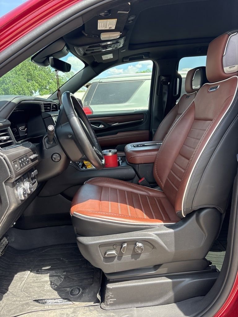 This 2023 GMC Yukon XL Denali Ultimate in Volcanic Red Tintcoat comes with the following features: EcoTec3 6.2L V8 10-Speed Automatic with Overdrive 4WD 4WD Advanced Security Package (Glass Breakage Sensor, Theft-Deterrent Alarm System, Vehicle Inclination Sensor, and Vehicle Interior Movement Sensor), Advanced Technology Package (Enhanced Automatic Parking Assist, Inside Rearview Auto-Dimming Rear Camera Mirror, Rear Camera Mirror Washer, and Reverse Automatic Braking), Floor Liner Package (LPO) (1st & 2nd Rows Premium Floor Liners (LPO), 3rd Row All-Weather Floor Liners (LPO), and All-Weather Cargo Mat (LPO)), License Plate Front Mounting Package, Max Trailering Package (Extra Capacity Cooling System), Preferred Equipment Group 5SB (15 Diagonal Multi-Color Head-Up Display, 16-Way Power Seat Adjusters, 2 Presets For Outside Rearview Mirrors, 3 Years of GMC Connected Services, 3 Years of OnStar Safety & Security, 3rd Row 60/40 Power-Folding Split-Bench Seat, Adaptive Cruise Control, Bose Performance Series Sound System w/18 Speakers, Bright Front & Rear Door Sill Plates, Chrome Door Handles w/Body-Color Strip, Dual Exhaust System, Dual-Pane Panoramic Power Sunroof, Enhanced Automatic Emergency Braking, Floor Console, Hands-Free Power Programmable Rear Liftgate, HD Surround Vision, Heated & Ventilated Driver & Front Passenger Seats, Heated 2nd Row Outboard Position Seats, Heated Driver & Front Passenger Seats, Heated Steering Wheel, Hill Descent Control, Leather-Wrapped Steering Wheel, Outside Heated Power-Adjustable Mirrors, Power Release 2nd Row Bucket Seats, Power Tilt & Telescopic Steering Column, Power-Retractable Assist Steps, Rear Cross Traffic Alert, Rear Pedestrian Alert, Rear Seat Media System, Safety Alert Seat, Sport Pedal Cover Kit (LPO), Universal Home Remote, Vader Bodyside Moldings, and Wireless Charging), Premium Capability Package w/Active Response 4WD (Air Ride Adaptive Suspension and Electronic Limited Slip Differential (eLSD)), 4WD, 18 Speakers, 3 Years of OnStar Safety & Security (DISC), 3.23 Rear Axle Ratio, 3rd row seats: split-bench, 4-Wheel Disc Brakes, ABS brakes, Adaptive suspension, Air Conditioning, Alloy wheels, AM/FM radio: SiriusXM with 360L, AM/FM Stereo, Apple CarPlay/Android Auto, Auto High-beam Headlights, Auto-dimming door mirrors, Auto-dimming Rear-View mirror, Auto-leveling suspension, Automatic temperature control, Bodyside moldings, Brake assist, Bumpers: body-color, Compass, Delay-off headlights, Driver door bin, Driver vanity mirror, Dual front impact airbags, Dual front side impact airbags, Electronic Stability Control, Emergency communication system: OnStar and GMC connected services capable, Four wheel independent suspension, Front anti-roll bar, Front Bucket Seats, Front Center Armrest, Front dual zone A/C, Front fog lights, Front reading lights, Full Grain Leather Seats, Fully automatic headlights, Garage door transmitter, Headphones, Heads-Up Display, Heated door mirrors, Heated front seats, Heated rear seats, Heated steering wheel, Hitch Guidance w/Hitch View, Illuminated entry, Integrated Trailer Brake Controller, Lane Departure Warning System, Leather steering wheel, Low tire pressure warning, Magnetic Ride Control Suspension, Memory seat, Navigation System, Occupant sensing airbag, Outside temperature display, Overhead airbag, Overhead console, Panic alarm, Passenger door bin, Passenger vanity mirror, Power door mirrors, Power driver seat, Power Liftgate, Power moonroof, Power passenger seat, Power steering, Power windows, Rain sensing wipers, Rear air conditioning, Rear anti-roll bar, Rear audio controls, Rear reading lights, Rear window defroster, Rear window wiper, Remote keyless entry, Roof rack: rails only, Security system, SiriusXM w/360L, Smart Trailer Integration Indicator, Speed control, Speed-sensing steering, Split folding rear seat, Spoiler, Steering wheel memory, Steering wheel mounted audi